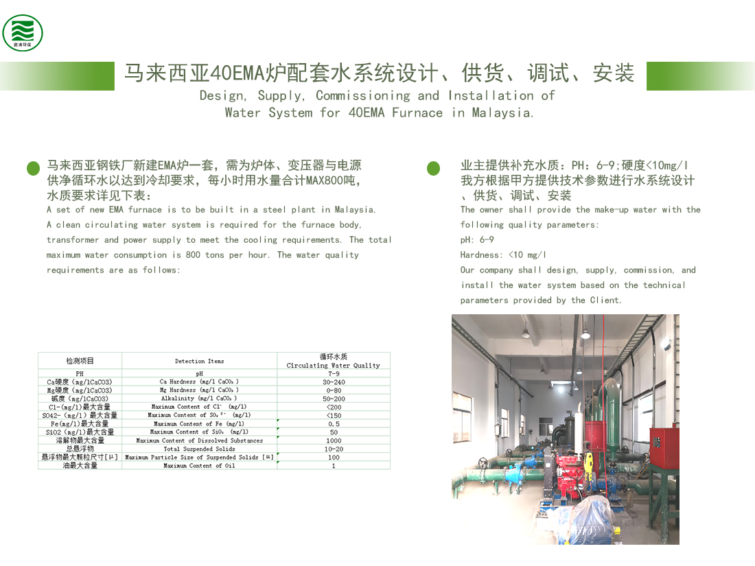 马来西亚40EMA炉配套水系统设计、供货、调试、安装