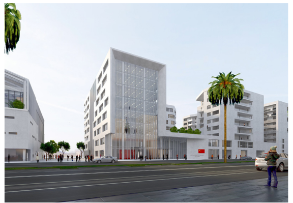 PROJET "ORIENTAL BUSINESS PARK"新建东方商业广场(OBP)项目(阿尔及利亚中建总部大楼)位于阿尔及利亚首都阿尔及尔Bab Ezzouar商务区,临近阿尔及利亚国际机场。工程占地面积20816平方米,建筑面积68000平方米。由办公区与服务区两部分组成。通过内部长廊集合办公、住宿、酒店、体育、餐饮、娱乐、购物等为一体多功能立体化综合性大楼。其中有办公楼1座,体育馆1座,服务楼8座。办公楼有地下3层,主要为停车场及技术间,地上7层,建筑高度31米,结构高度29.98米。公寓A楼-H楼地下1层,主要为技术间地上7层,建筑高度30.40米,结构高度29.28米。我方主要承接办公楼及公寓楼、室外管网的机电设计。在项目初期,为保证施工进度,我方甚至在3个月内完成80%的设计任务,在后期,也积极配合现场施工。当前,公寓楼已完成施工,办公楼部分已施工完成。