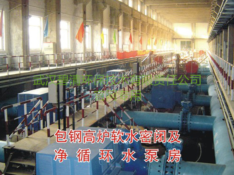 包钢2500m3高炉软水密闭循环系统,设有冷却壁循环供水泵3台,单台流量2052m3/h,扬程50m,功率400kw,及1台柴油机泵;净循环水系统总循环水量2040m3/h,风口小套循环供水泵3台;该泵房长90m,宽12m,房顶设有10台空冷器、2台冷却塔。