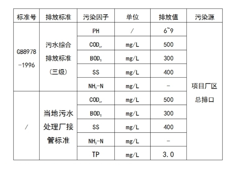 外排废水执行《污水综合排放标准》(GB8978-1996)